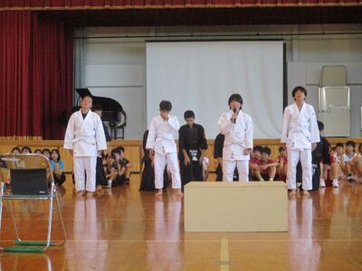9月11日(水)、本校体育館で胆江地区新人大会壮行式を行いました。胆江地区新人大会は9月14日(土)、15日(日)に行われます。中総体以降、3年生からバトンを受け継ぎ、練習に励んできた2年生、1年生。自分たちが主役となって行われた初の壮行式とあって、初々しさが感じられましたが、どの部もしっかりと意気込みを発表することができました。