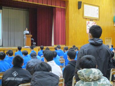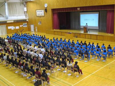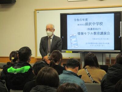 2月7日(水)、来年度入学予定の保護者の方々に来校していただき、新入生保護者説明会を開催しました。中学校の生活や学習について担当から説明しました。また、これに合わせて、岩手県警北上警察署の畠山良二氏(スクールサポーター)を講師としてお招きし、情報モラルについての講演会も行いました。中学校入学まで2か月を切ったところです。職員一同、新入生の入学を心待ちにしております。保護者の皆様、どうぞよろしくお願いいたします。