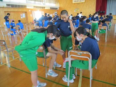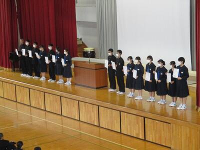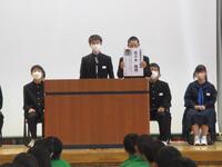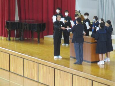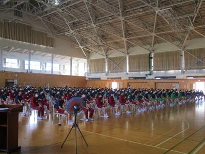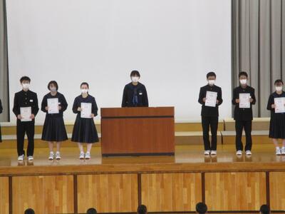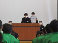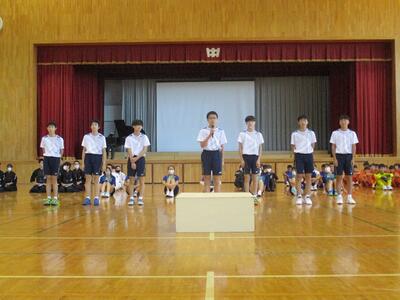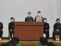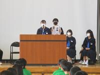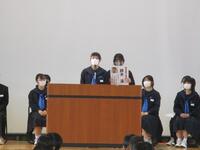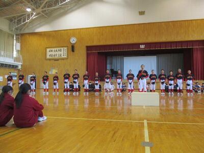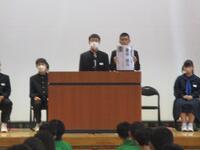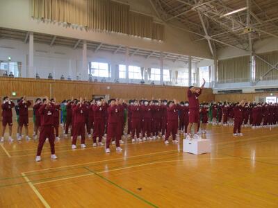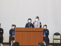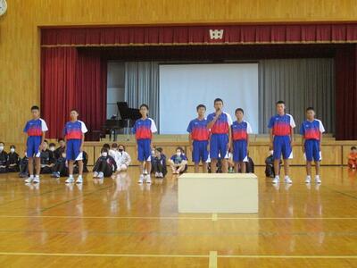 10月12日(木)、岩手県中学校新人大会の壮行式を行いました。県大会に出場する部は、指導者や保護者への感謝を忘れず、上位を目指して一生懸命プレーする決意を示しました。前期種目は10月14日(土)~15日(日)、後期種目は11月18日(土)~19日(日)に行われます。どうぞよろしくお願いいたします。
