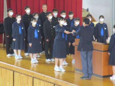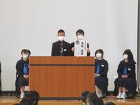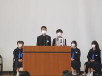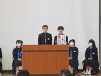 10月12日(木)、生徒会役員認証式を行いました。10日(火)の立会演説会・投票を経て、新たな生徒会執行部が誕生しました。これからの1年間、全校のリーダーとして、大いに力を発揮してくれると信じています。