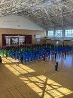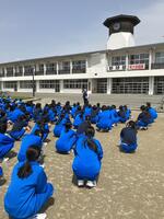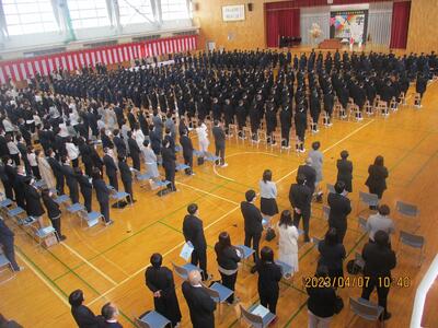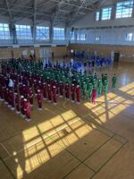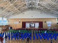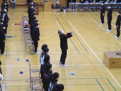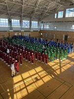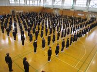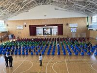4月10日(月)、1年生を交えての全校集会指導を行いました。全校集会等での教室から体育館への移動のしかたや体育館で並ぶ位置、話を聴く姿勢など、応援団の指導の下、全校で確認しました。