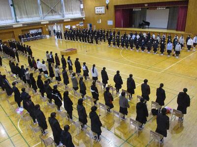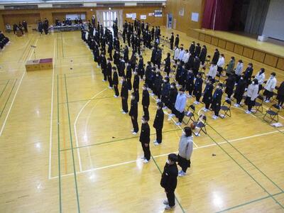 「今学期皆さんにお願いしたいことは、収穫の時にしてほしいということです。1学期の貴重な経験を種として、2学期の努力を肥料にして、最高の形で卒業、進級できるよう、日々の学校生活をしっかりと積み重ね、皆さん一人ひとりにとって、クラスや学年にとっても、前沢中学校全体にとっても、種を実らせることができた、と言える3学期にしたいと思います。自分の良さを伸ばすために頑張る姿、仲間を大切にする姿を惜しみなく見せる前中生であることを期待しています。」