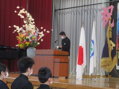 「先入観は可能を不可能にする」これは、大谷翔平選手が大事にしている言葉です。皆さんも、先入観をもたず、たくさんのことに挑戦してください、失敗してもいい。周りには、手を貸してくれる仲間がいます。先輩がいます。先生方がいます。失敗から得るものは大きく、無限です。新入生の皆さん、私たちと一緒に、無限の可能性に挑戦していきましょう。そして、私たちで、新たな前沢中学校を創っていきましょう。