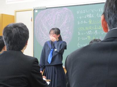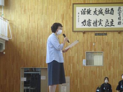 2つ目は、『つながる力』を身につけようとしてください。その『つながる力』は、困ったときに「助けてほしい」と言える力にもなります。思いやりの心を大切に、全校でつながり、みんなに居場所のある、そんな学校を一緒に創っていきましょう。