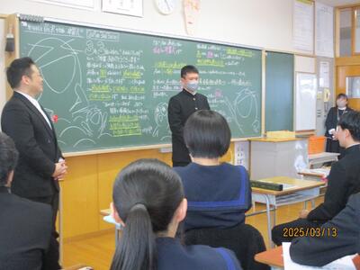 4月から私たちは、自ら選んだ道を歩み始めます。もし、避けては通れない壁に直面したときは、ここ前沢中学校で培った力で乗り越え、それぞれの夢に向かって力強く進んでいきます。