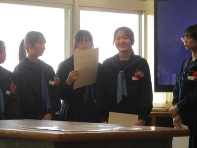 そして、指導してくださった先生方、辛い時には寄り添って話を聞き、嬉しいときには一緒に喜んでくださいました。時に厳しくしかられることもありましたが、今は、それが私たちへの愛情なのだと気づきました。ありがとうございました。