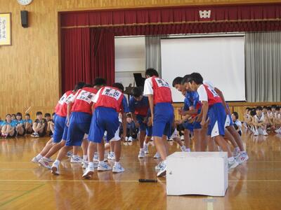 6月12日(木)、地区中総体及び吹奏楽コンクール県南地区大会の壮行会を行いました。各部とも代表生徒の力強い決意と工夫を凝らしたパフォーマンスで、チームの意気込みと団結を表現しました。当日は、どの会場においても、プレーの面でも、マナーの面でも「チーム前中!」で力を発揮してほしいと思います。