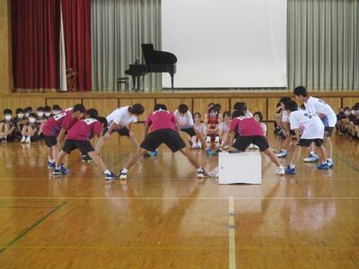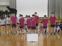 受け継がれてきた伝統や活動などの水準をあげて、全員で高め合う姿を目指したいと思います。その姿に近づくために、活動の柱を「合唱」「時間」「思いやり」にしました。合唱では、自分が声を出そうとすることで、その声が周りを安心させます。時間を見て自分が早く行動すれば、友だちも3分前行動ができるようになります。思いやりでも、自分が相手を思いやる行動をし、感謝の気持ちを伝えると温かい雰囲気が生まれ、自分にもその行動が返ってきます。自分が行動し、全校が今より進化し、