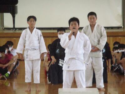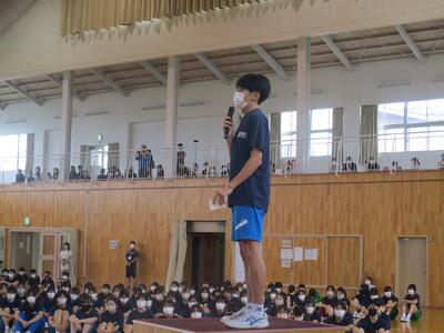 7月10日(木)、岩手県中学校総合体育大会【開催期日:7月12日(土)~14日(月)、7月19日(土)~21日(月)】の壮行式を行いました。地区中総体から約1ヶ月ほどの間、懸命に練習に励み、上位入賞、上位大会進出への意気込みと、これまで支えてくださった方々に対する感謝を堂々と発表しました。