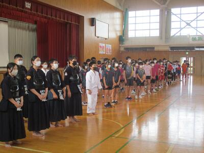 9月11日(木)、胆江地区新人大会壮行式を行いました。大会は9月13日(土)~14日(日)に行われます。中総体以降、3年生からバトンを受け継ぎ、練習に励んできた2年生、1年生。自分たちが主役となって行われた初の壮行式とあって、初々しさが感じられましたが、どの部もしっかりと意気込みを発表することができました。当日は学校で実力テストを受験する3年生も、後輩のために、精一杯声を出して声援を送っていました。