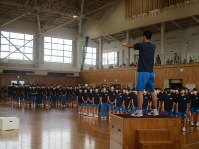 学校に足を運んでいただき、壮行会をご覧いただきました保護者の皆様、誠にありがとうございました。大会当日も、生徒への熱い声援をよろしくお願いいたします。